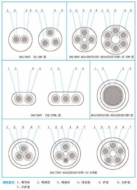 1.3.2“W”型派生電纜具有耐氣候和一定的耐油性能,適宜于戶外或接觸油污的場(chǎng)合使用。